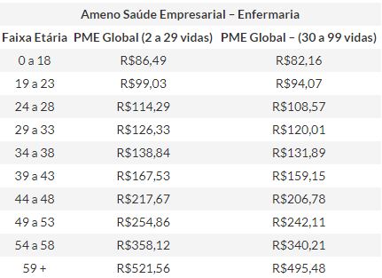 Oferecer um benefício saúde aos seus beneficiários é oferecer uma maior capacidade de expansão para a sua empresa. Ter um Plano como o Ameno Saúde Empresarial, é se aliar à uma empresa inovadora que busca aderir às suas parcerias maior vantagem. Conheça seus valores abaixo!